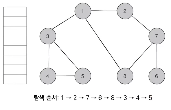 - 탐색 시작 노드를 스택에 삽입하고 방문 처리를 한다.