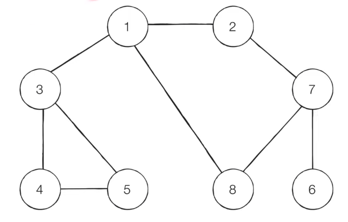 # DFS 함수 정의 def dfs(graph, v, visited): # 현재 노드를 방문 처리 visited[v] = True print(v, end=' ') # 현재 노드와 연결된 다른 노드를 재귀적으로 방문 for i in graph[v]: if not visited[i]: dfs(graph, i, visited) # 각 노드가 연결된 정보를 리스트 자료형으로 표현(2차원 리스트) graph = [ [], [2, 3, 8], [1, 7], [1, 4, 5], [3, 5], [3, 4], [7], [2, 6, 8], [1, 7] ] # 각 노드가 방문된 정보를 리스트 자료형으로 표현(1차원 리스트) visited = [False] * 9 # 정의된 DFS 함수 호출 dfs(graph, 1, visited)실행 결과